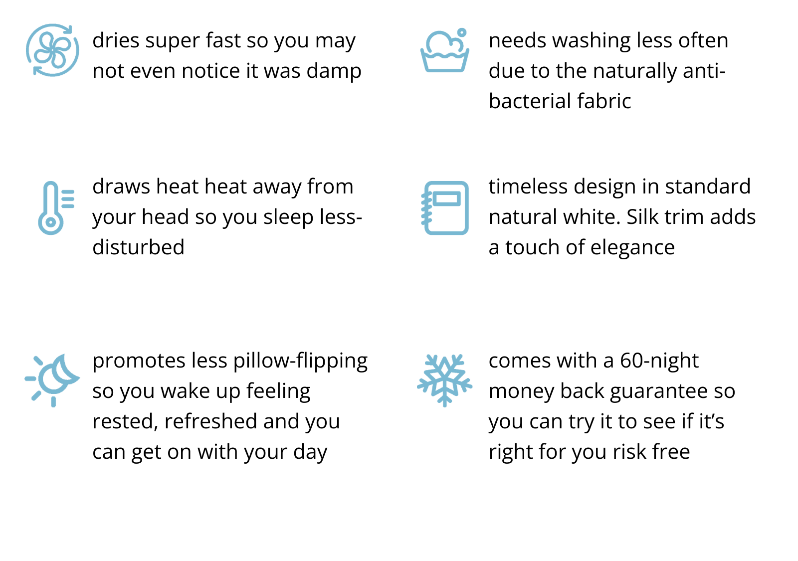 Especially suitable for memory foam and other synthetic pillows prone to heat retention, our pillowcase aids in keeping you feeling cooler throughout the night.